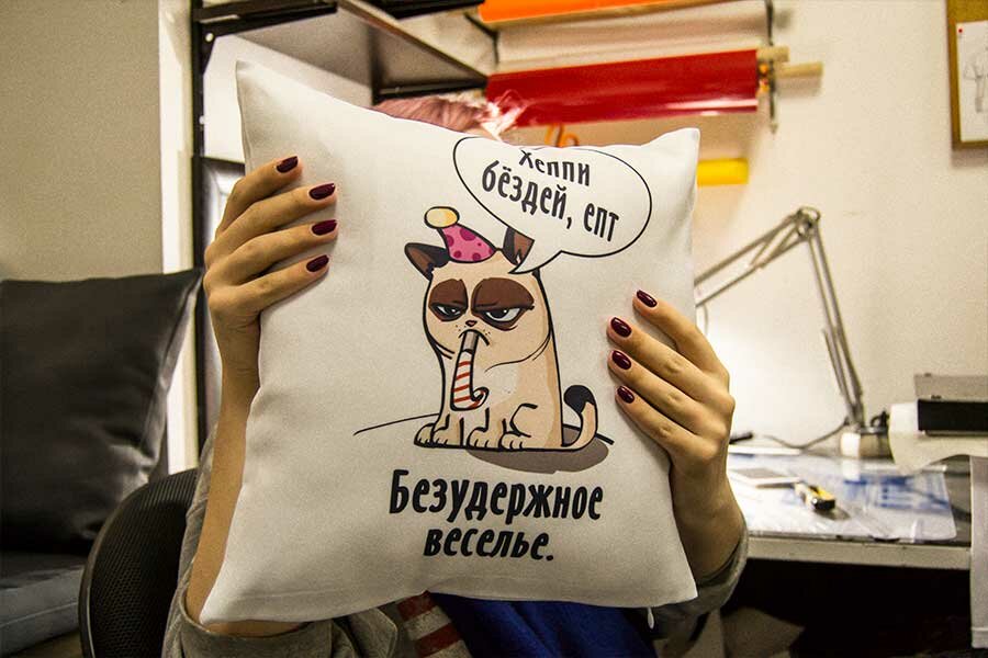 Печать на подушке в Москве от 1 шт. Изготовление с готовым макетом занимает 10 минут. Возможно курьерская доставка или же самовывоз.