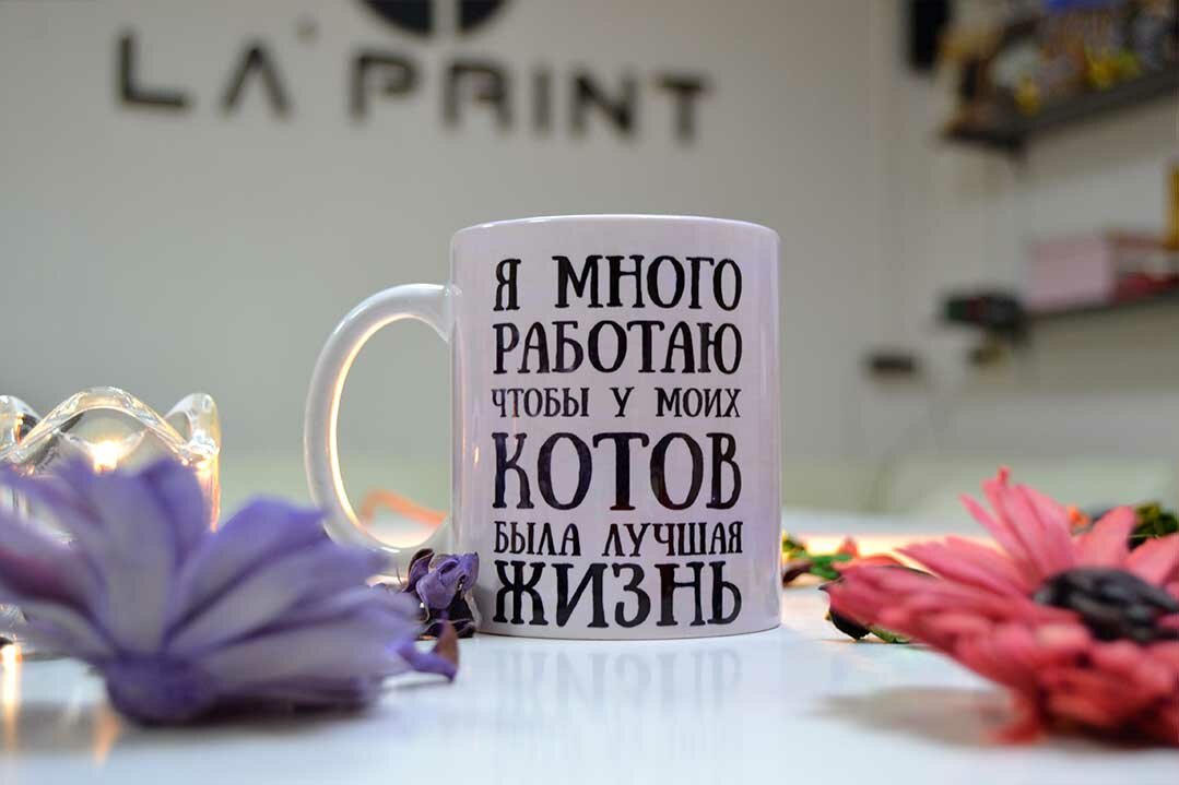 Надпись: Я ОЧЕНЬ МНОГО РАБОТАЮ, ЧТО БЫ У МОИХ КОТОВ БЫЛА ЛУЧШАЯ ЖИЗНЬ