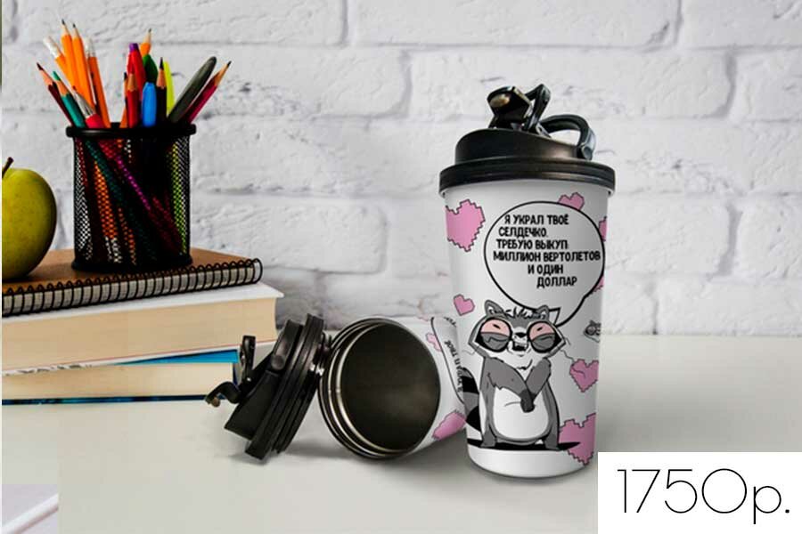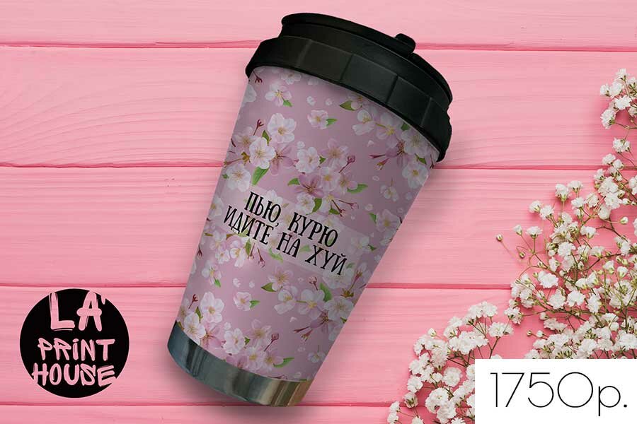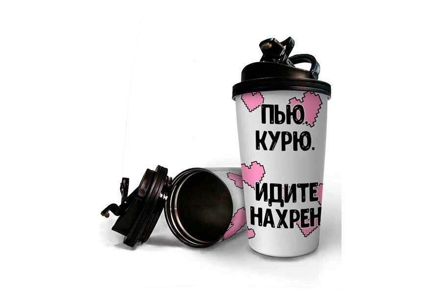 ТЕРМОСТАКАН"ПЬЮ КУРЮ"металл класса премиумсублимационная480 мл.