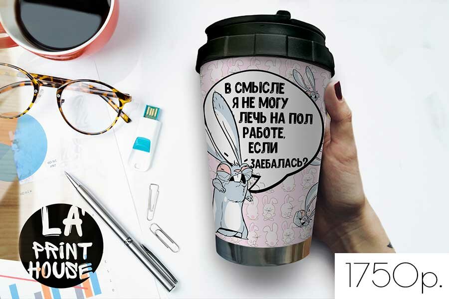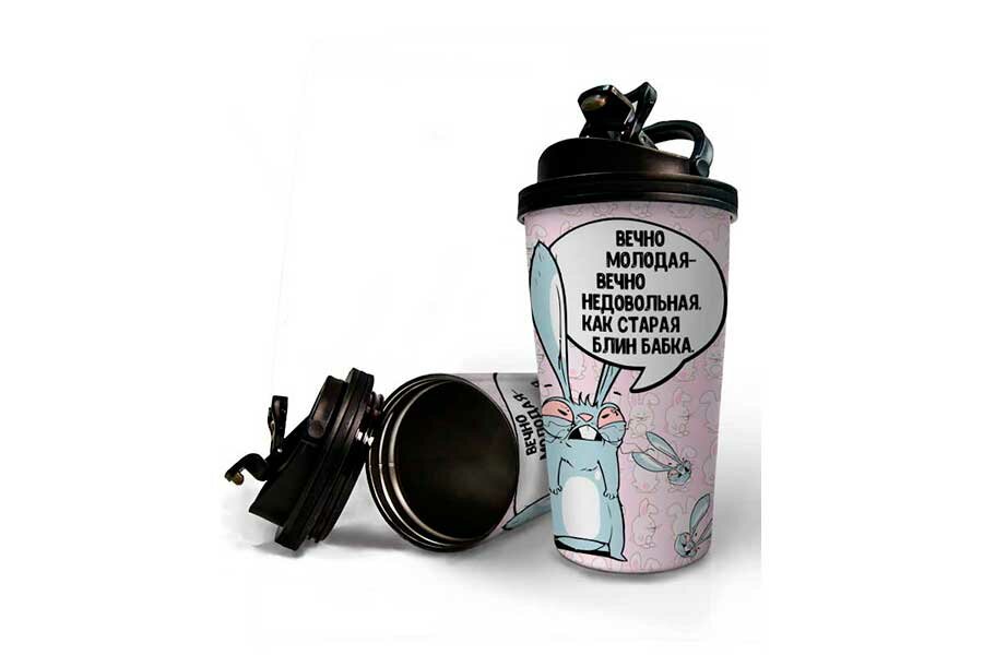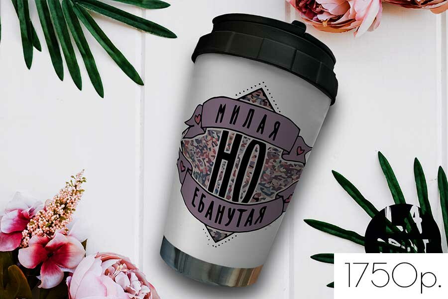 ТЕРМОСТАКАН"МИЛАЯ НО ЕБАНУТАЯ"металл класса премиумсублимационная480 мл.