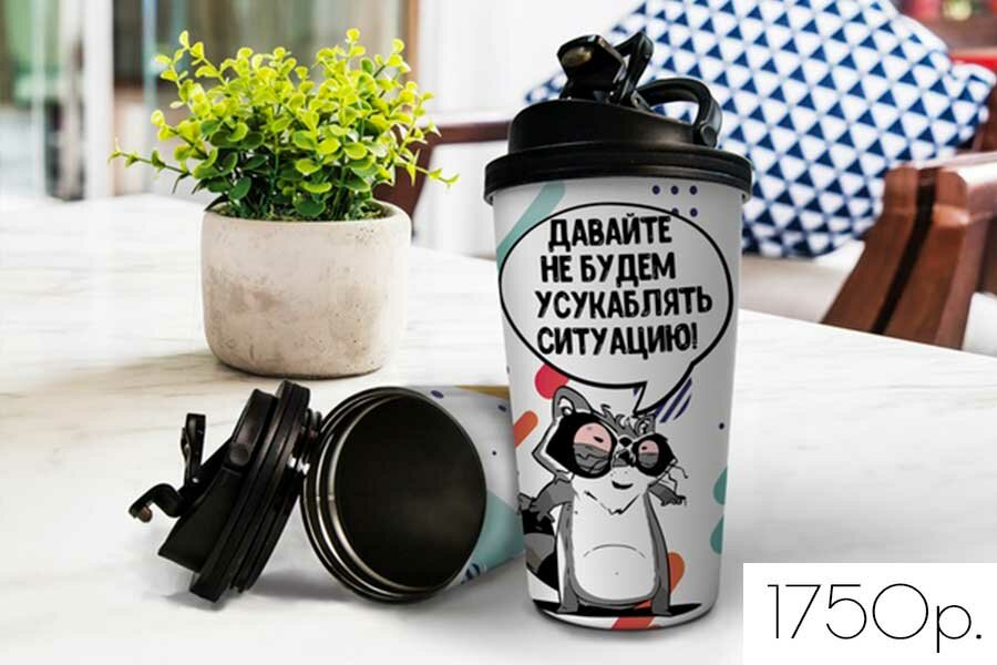 ТЕРМОСТАКАН"ДЕПРЕССУКА"металл класса премиумсублимационная480 мл.