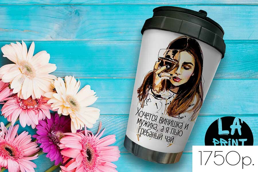 ТЕРМОСТАКАН"ВЫПИТЬ"металл класса премиумсублимационная480 мл.