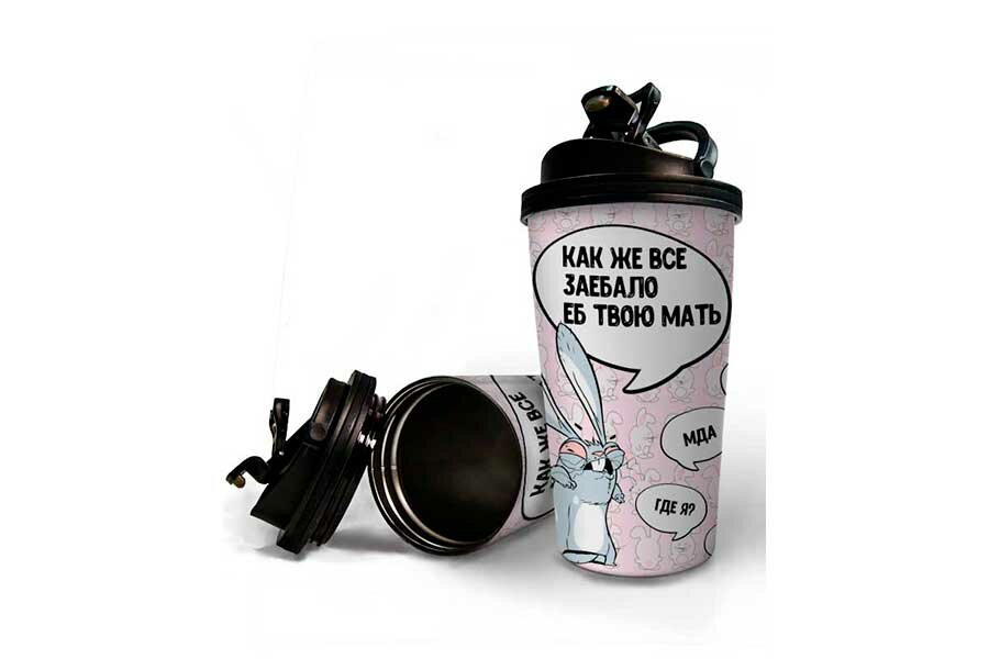 ТЕРМОСТАКАН"ЗАЕБАЛАСЬ"металл класса премиумсублимационная480 мл.
